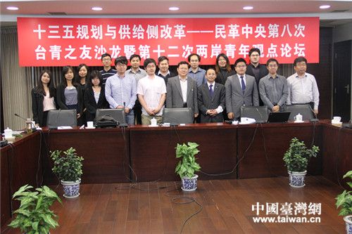 国家发改委宏观经济研究院经济所处长左传长(前排右四)和与会台湾青年合影留念。(中国台湾网 郜利敏 摄)